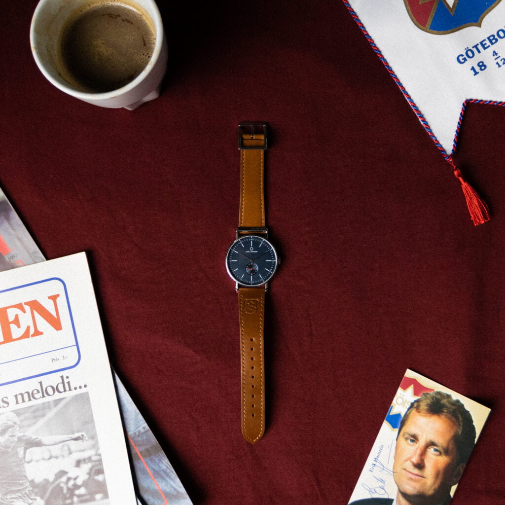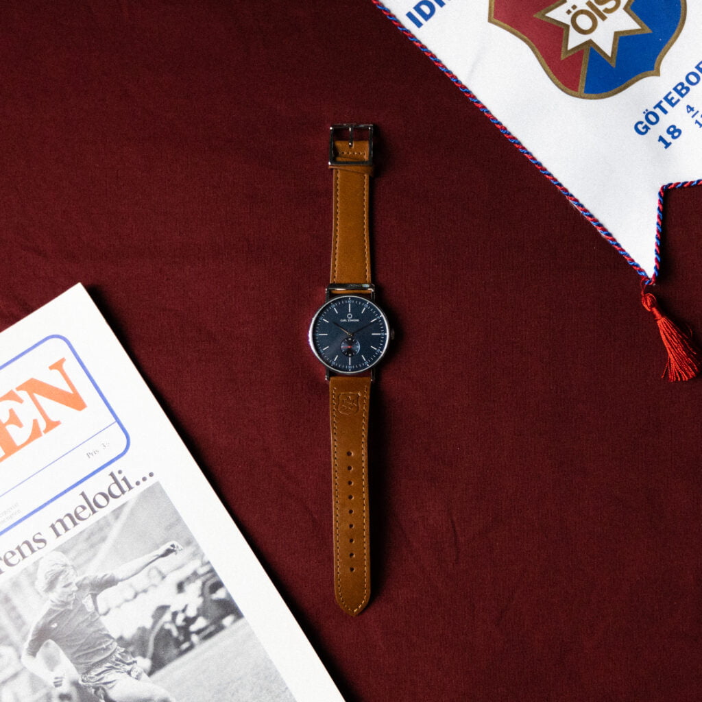 Klockan säljs både i butik och online och kostar 1887 kronor. Klockmodellen är Carl Edmond Ryolit Navy Blazer 40 och den är utrustad med ett batteridrivet urverk. Klocka kommer med snygg djupblå urtavla och högblanka index. Detta matchas med ett cognacbrunt läderband där du hittar en präglad ÖIS-logga.