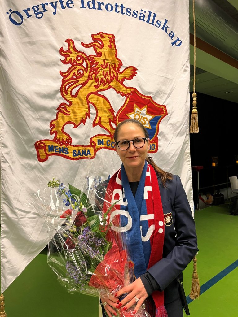 Efter dryga tre timmar var det dags att runda av med avtackning. Fredrik Björk som lämnar styrelsen fick en varm applåd av årsmötet då han inte kunde medverka på plats och Hillevi Börjesson fick emotta blommor och en ÖIS-halsduk som tack för två år i styrelsen.