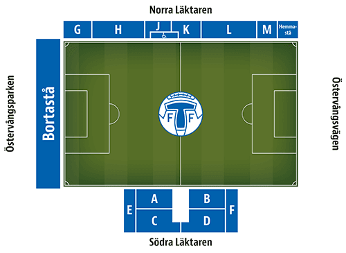 Bortaläktaren är placerad på Vångavallens västra sida, med entré via Östervångsparken. Besökare som vill stå på bortaläktaren uppmanas att parkera vid Söderslättshallen och promenera genom parken till insläppet. För er som föredrar att sitta rekommenderas att köpa biljett till sektion G.