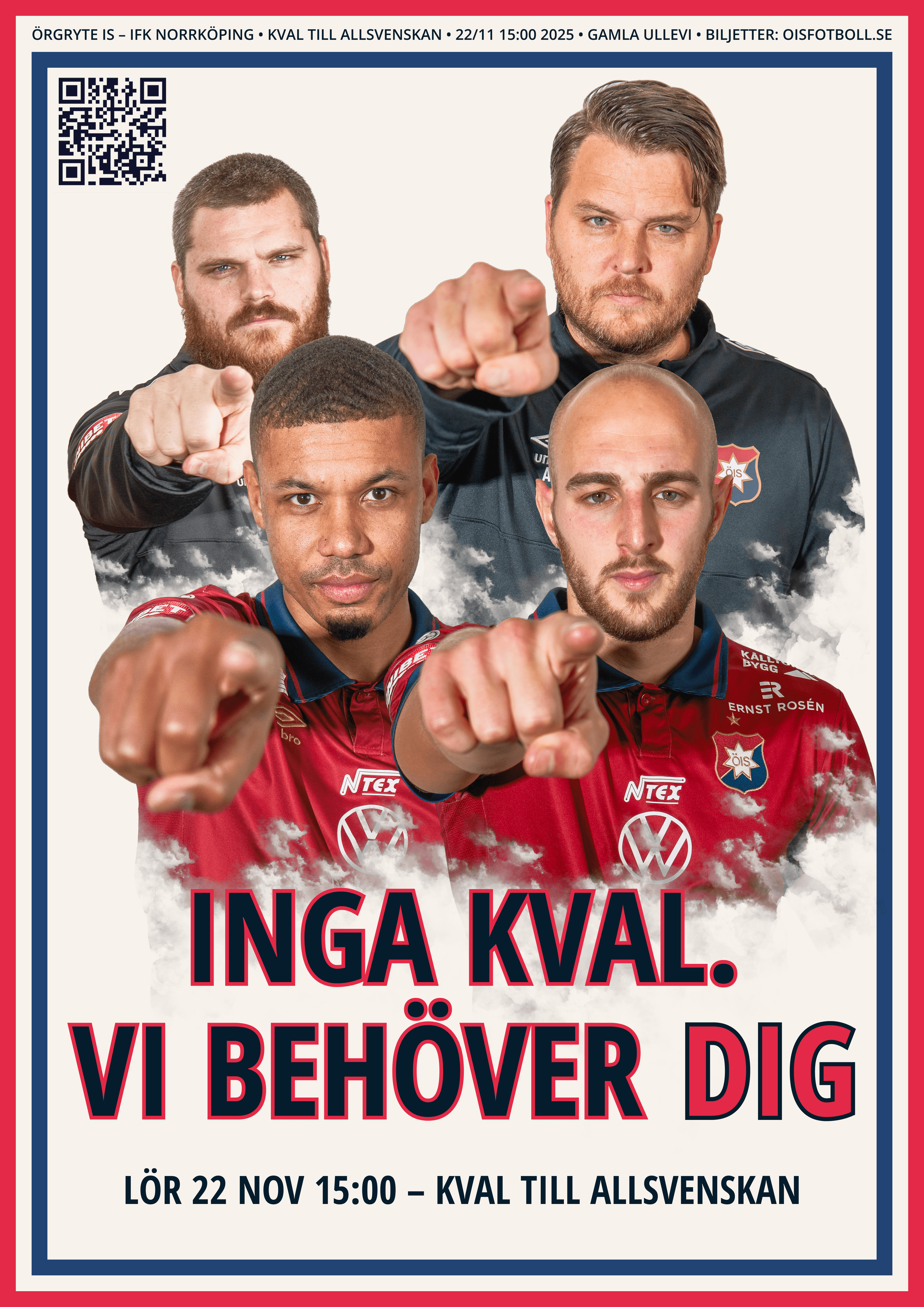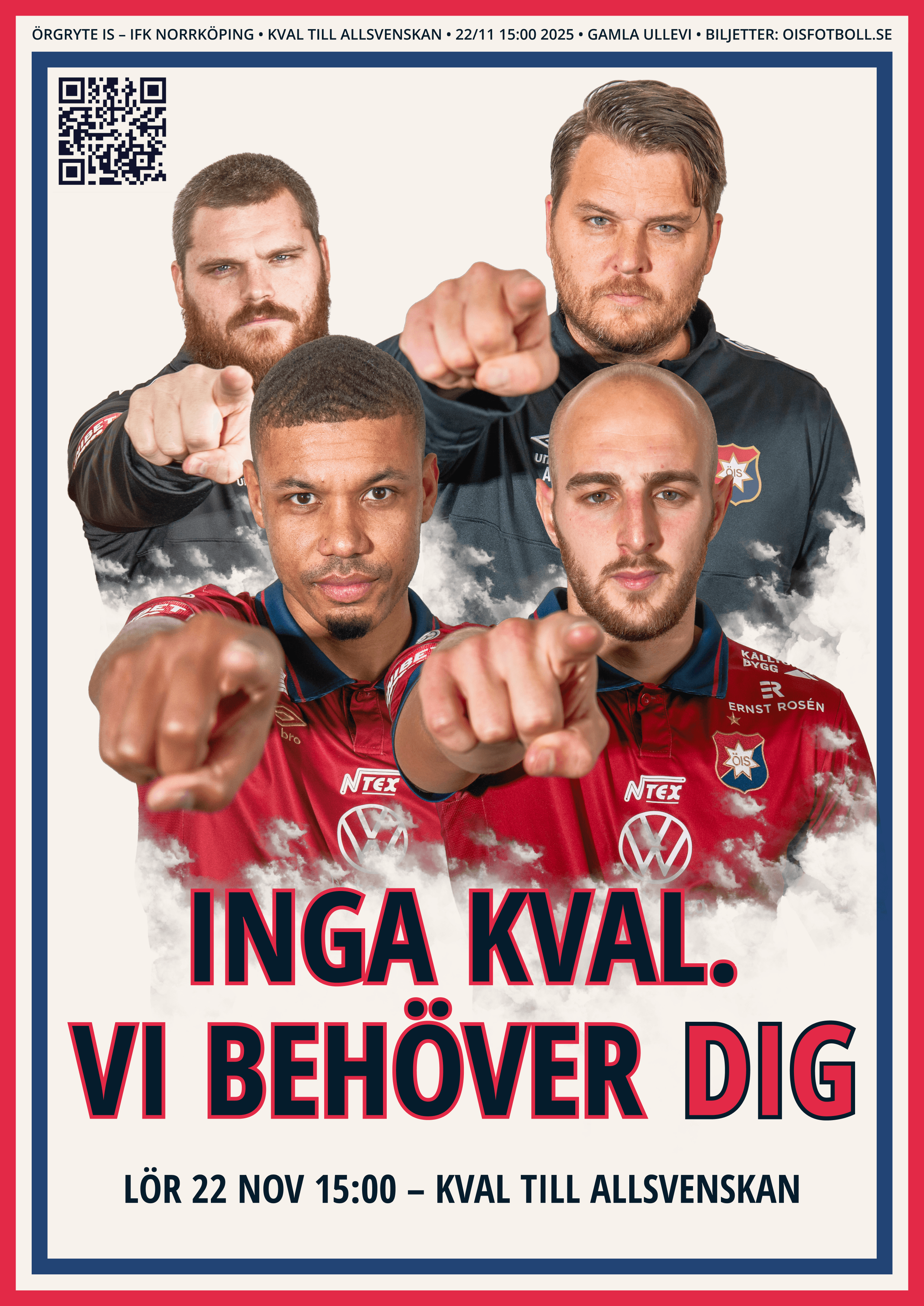 Nu gäller det – det är dags att avgöra vilket lag som tar plats i Allsvenskan 2026! Vi inleder kvalet på hemmaplan och uppmanar alla ÖIS:are att ta sig till Gamla Ullevi för att ge laget de bästa möjliga förutsättningarna att ta hem segern.