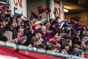 Vid 18:54 vandrar spelarna in på plan till tonerna av Himmel röd och blå. Vi uppmanar all publik att stå upp, sjunga med, och hålla upp sin halsduk. Texten till låten visas på storbildsskärmarna.